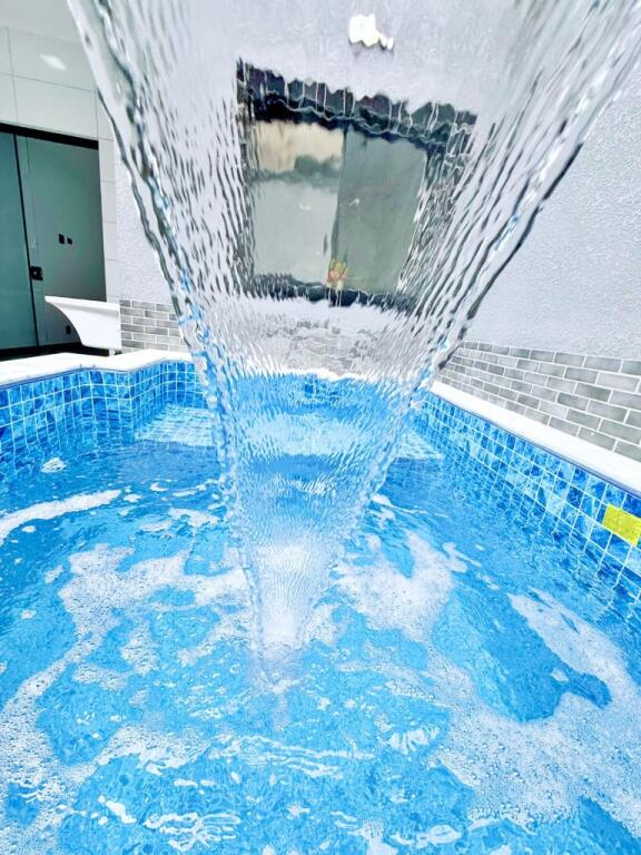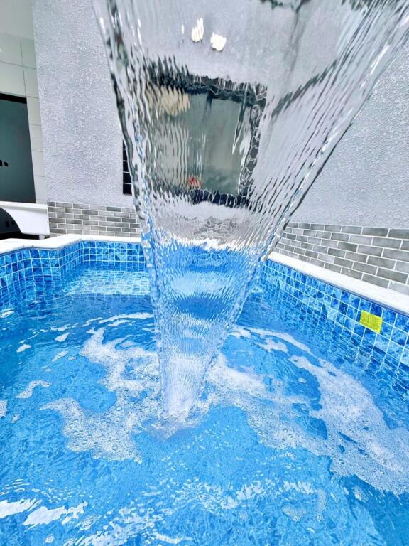 Piscina com cascata, perfeita para relaxar nos dias de sol